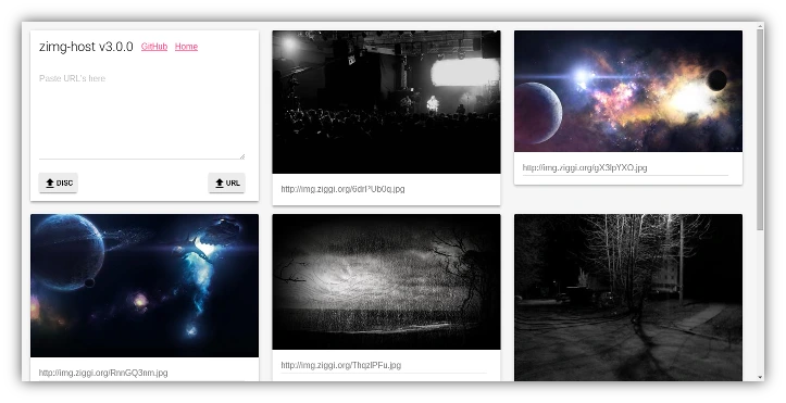 Простой движок хостинга изображений, без использования базы данных, доступно API, есть возможность закрыть паролем.